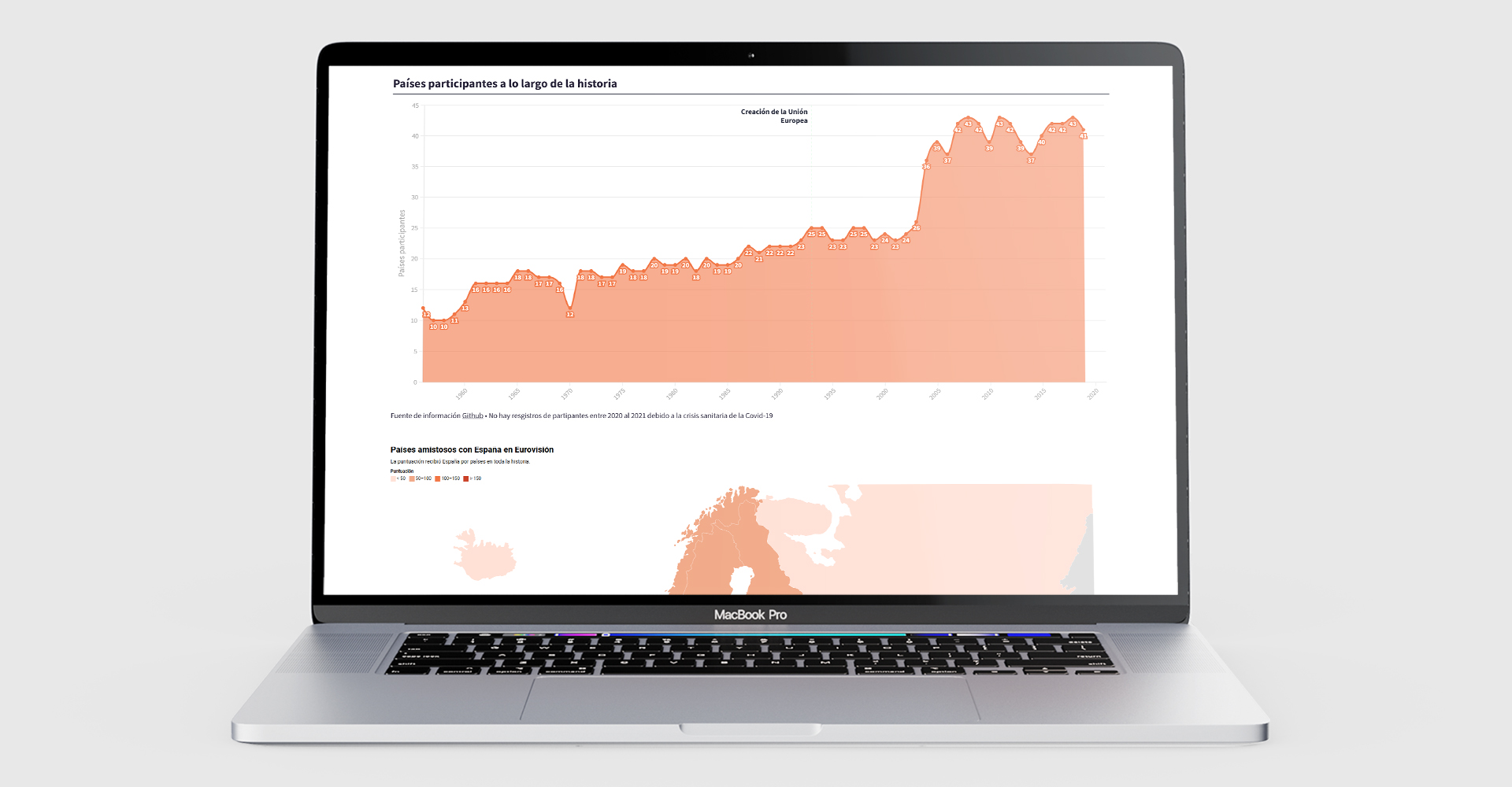Using Flourish and Mapbox, these visualizations reveal trends in winners, voting behavior and staging order, highlighting which countries dominate the scoreboard and when performances tend to score highest. Dynamic views, such as the bubble map of host cities, invite the user to explore Eurovision’s most significant milestones in an intuitive, visual way.
